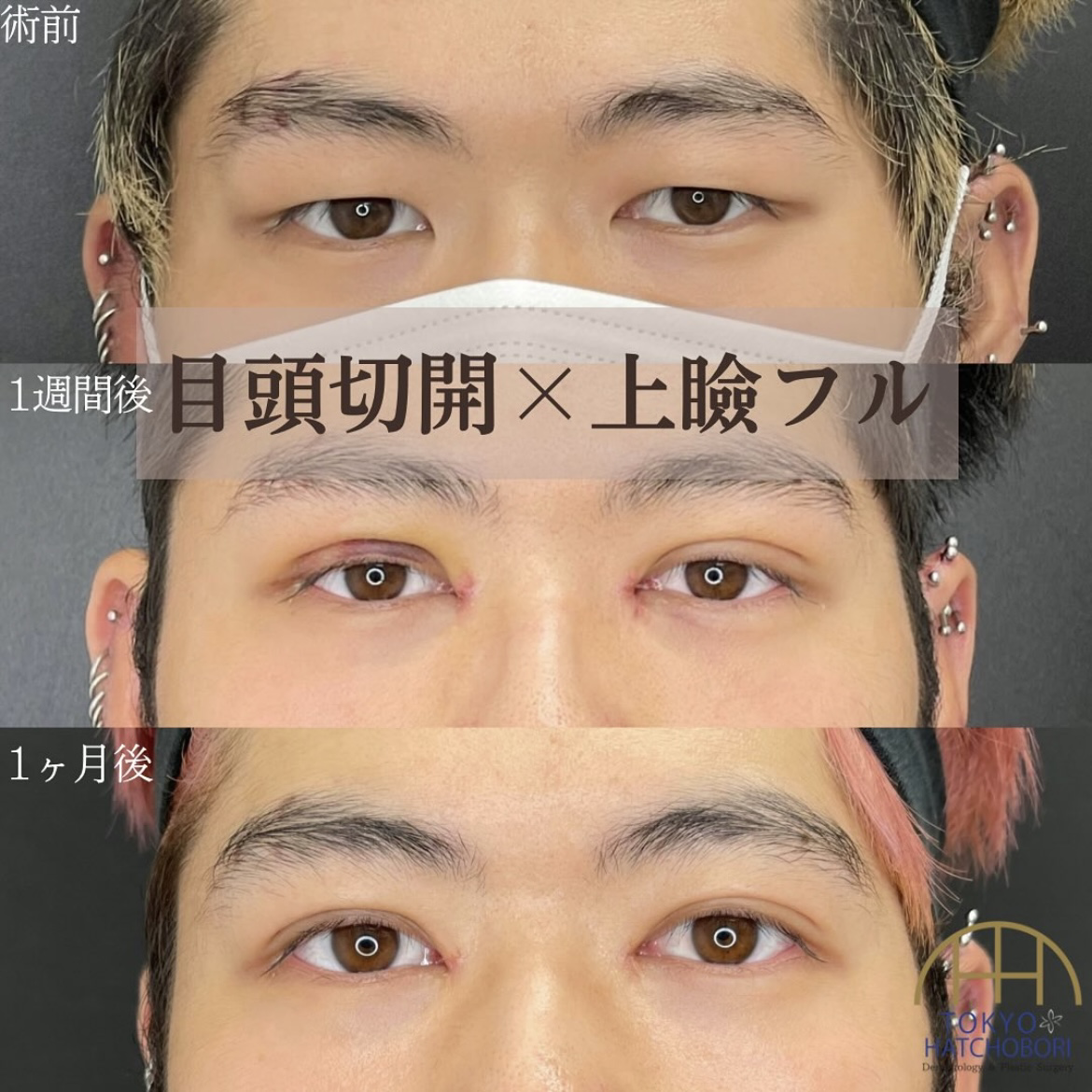 高度の場合は、切開法による重瞼術とほぼ同様の方法で行います。
