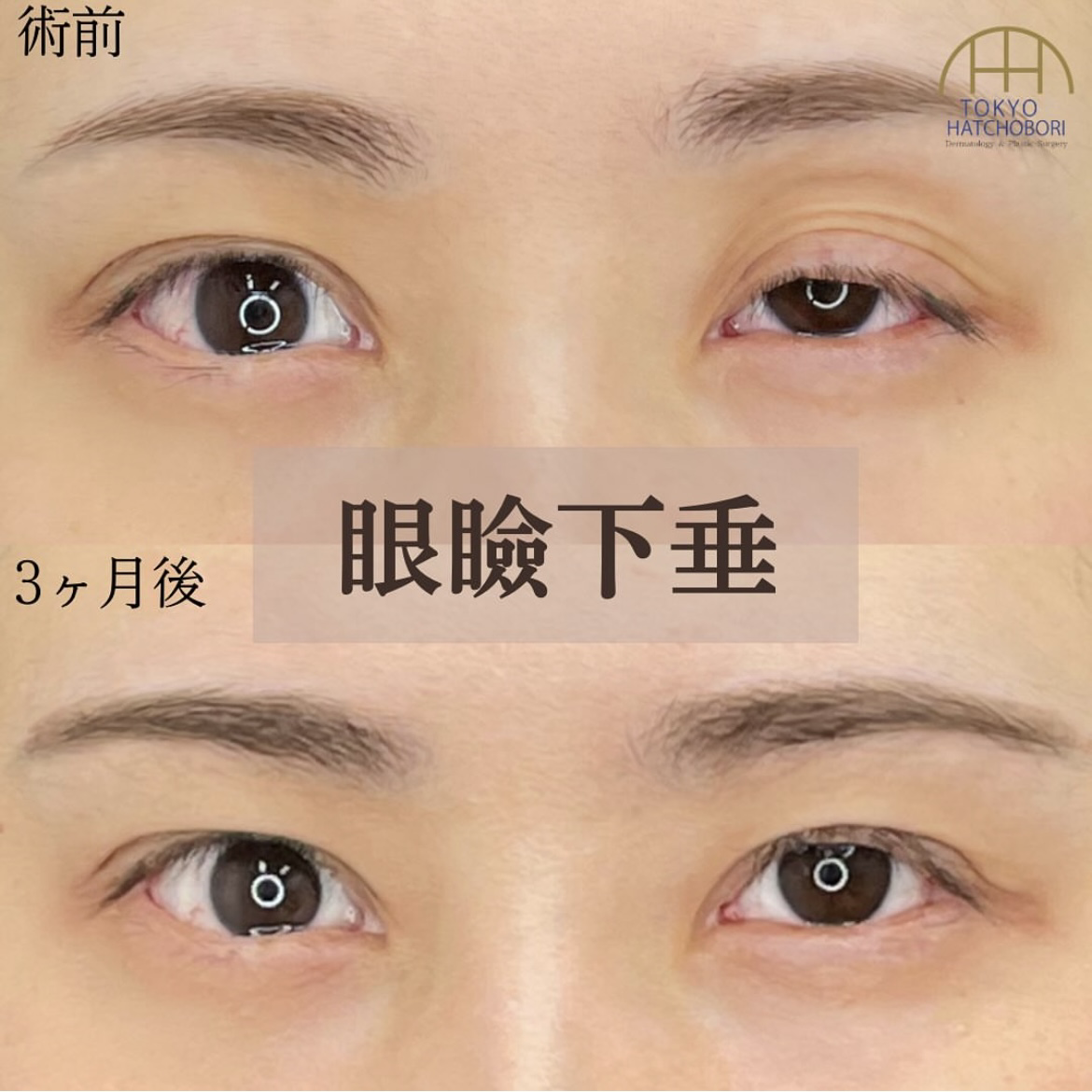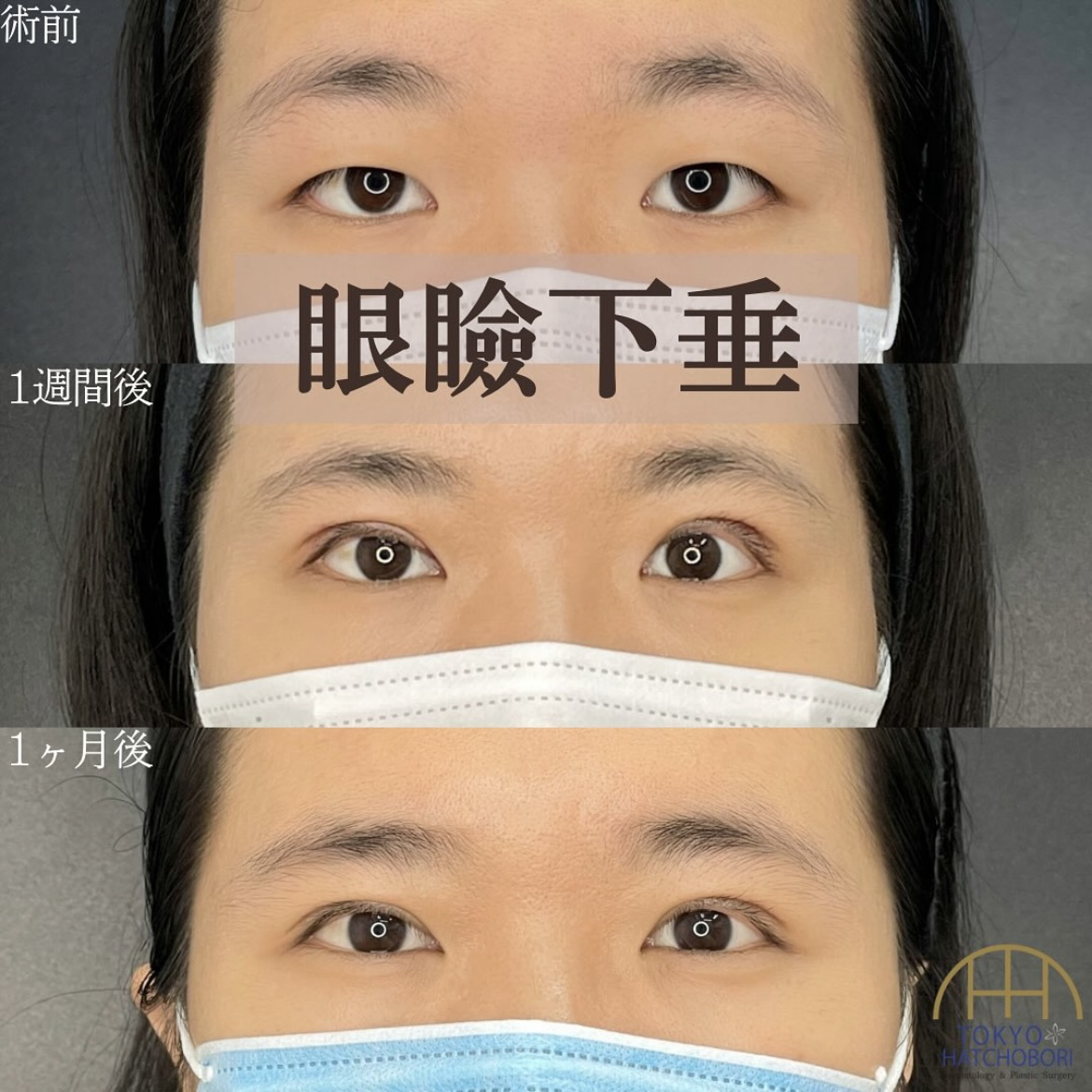 手術の場合は睫毛の下を切開し、余分な組織を除去した後、瞼板前組織に縫合糸をかけて下眼瞼を外反させます。